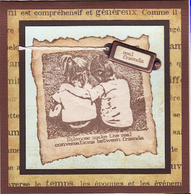 We all had to make a card using a pre-made layout sketch. This is mine. I borrowed Kim's stamps and I adore this woman! She's just simply beautiful! Thanks, Kim... Miss you already!!